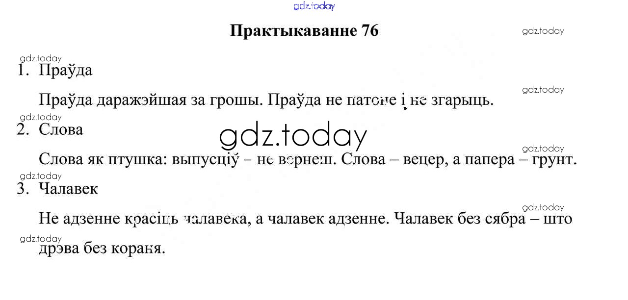 На страницах сайта gdz.today вы найдете учебный и вспомогательный материал, направленный на улучшения знаний школьной программы. ГДЗ - онлайн мир знаний Рашальнік да часткі 2. Практыкаванні 76 Учебнику по Белорусскому языку для 4 класса Свірыдзенка Национальный институт образования 2018