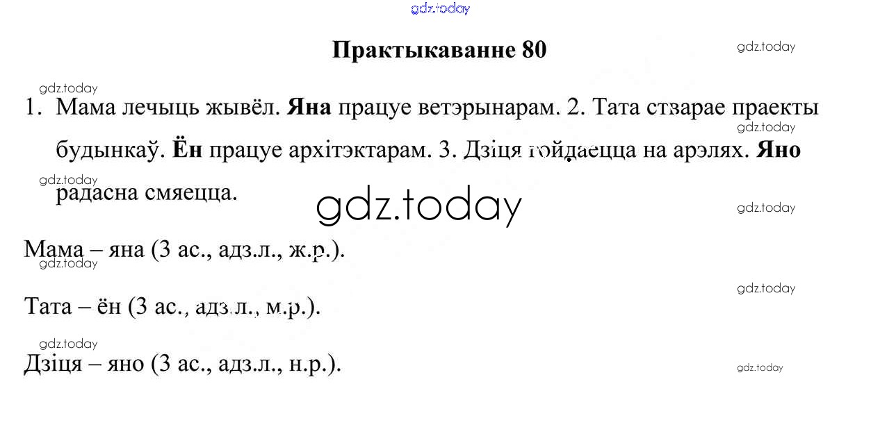 На страницах сайта gdz.today вы найдете учебный и вспомогательный материал, направленный на улучшения знаний школьной программы. ГДЗ - онлайн мир знаний Рашальнік да часткі 2. Практыкаванні 80 Учебнику по Белорусскому языку для 4 класса Свірыдзенка Национальный институт образования 2018