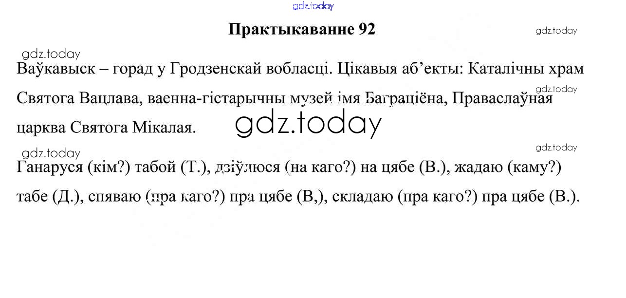 На страницах сайта gdz.today вы найдете учебный и вспомогательный материал, направленный на улучшения знаний школьной программы. ГДЗ - онлайн мир знаний Рашальнік да часткі 2. Практыкаванні 92 Учебнику по Белорусскому языку для 4 класса Свірыдзенка Национальный институт образования 2018