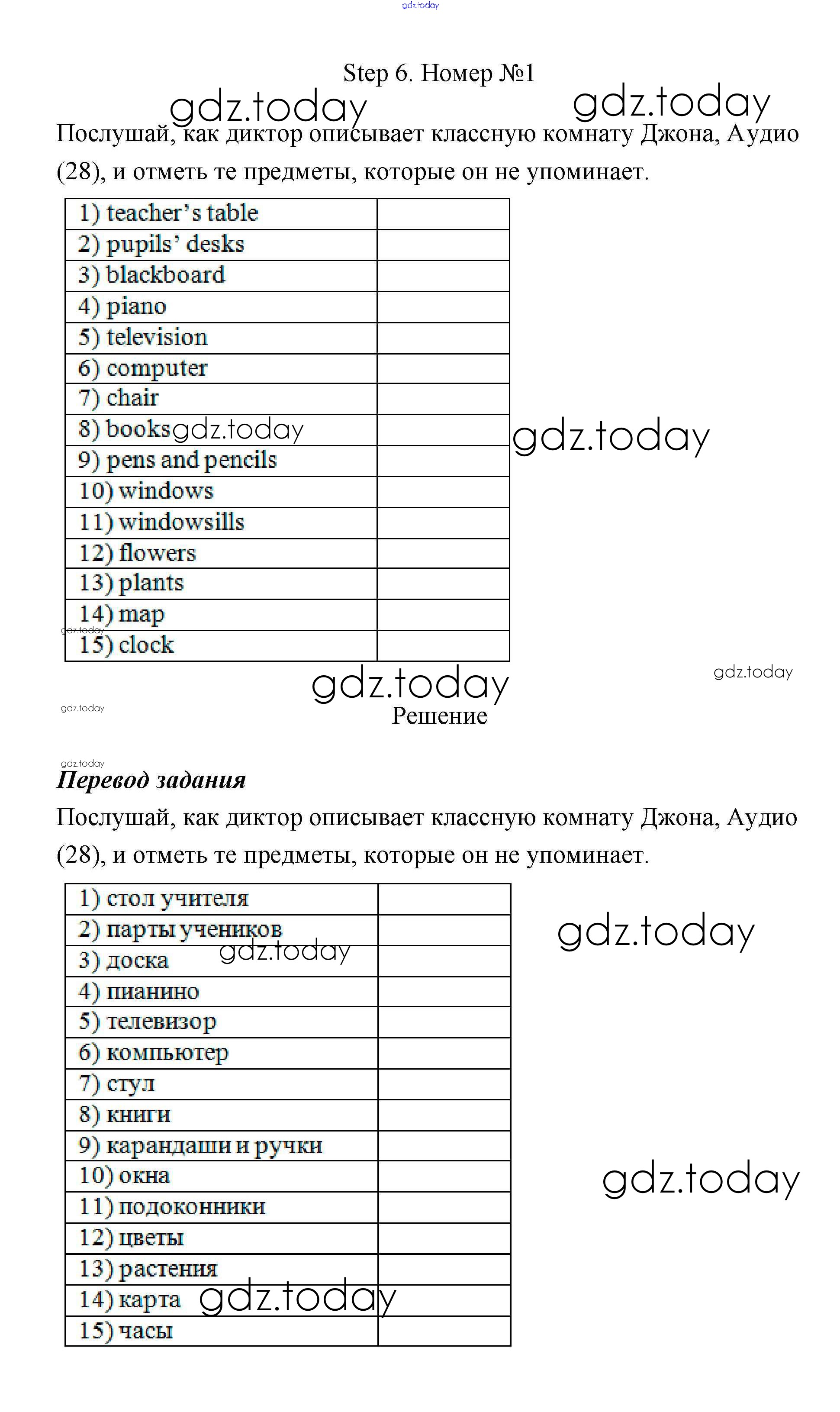 На страницах сайта gdz.today вы найдете учебный и вспомогательный материал, направленный на улучшения знаний школьной программы. ГДЗ - онлайн мир знаний Step 6 Решение. Unit 4 1 Рабочей тетради по Английскому языку для 4 класса Афанасьева, Михеева Дрофа Rainbow 2016