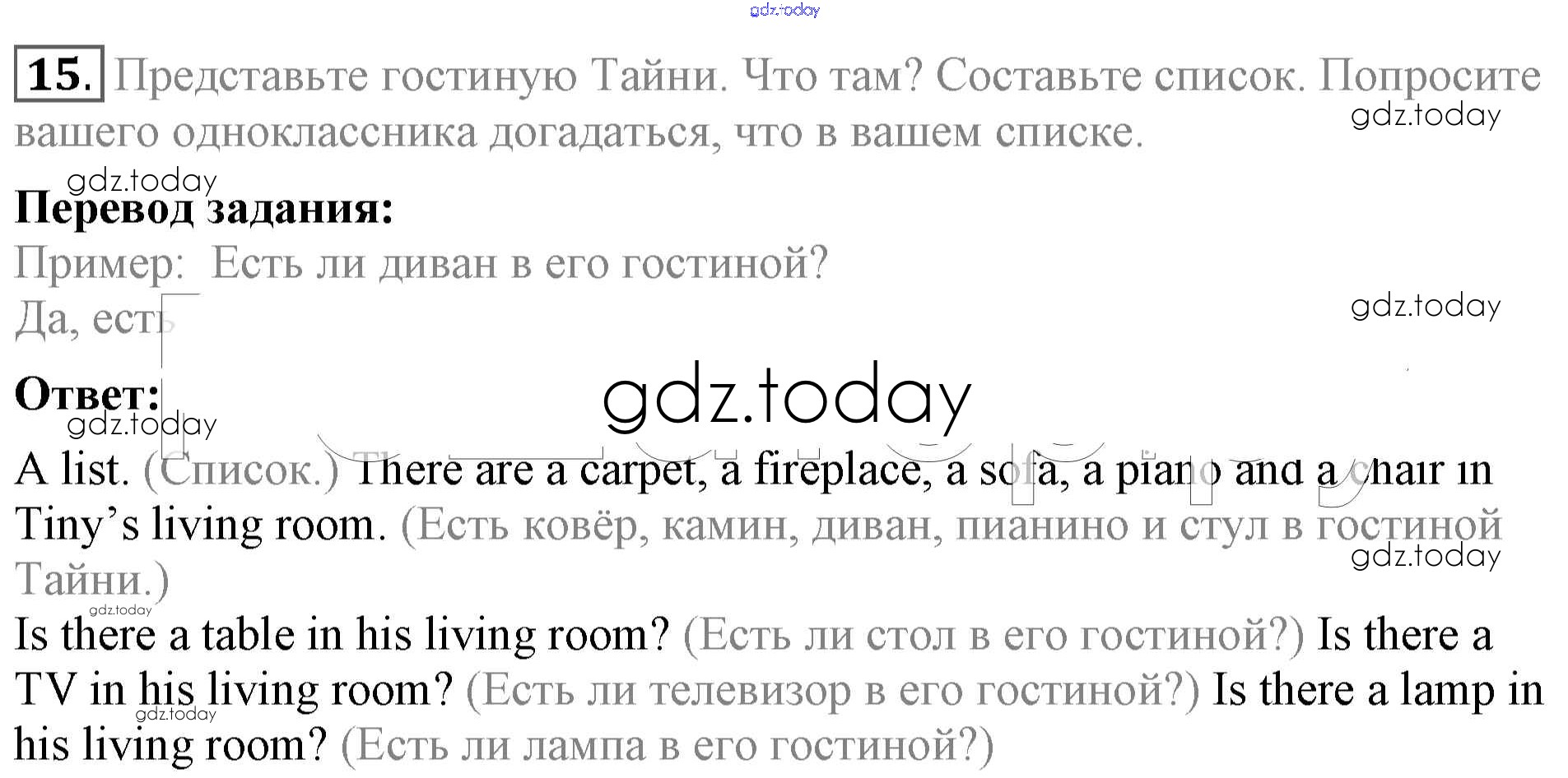 На страницах сайта gdz.today вы найдете учебный и вспомогательный материал, направленный на улучшения знаний школьной программы. ГДЗ - онлайн мир знаний Страница 23. What is there in your room Решение к Unit 2 15 Учебнику по Английскому языку для 4 класса Биболетова, Денисенко Дрофа Enjoy English 2016