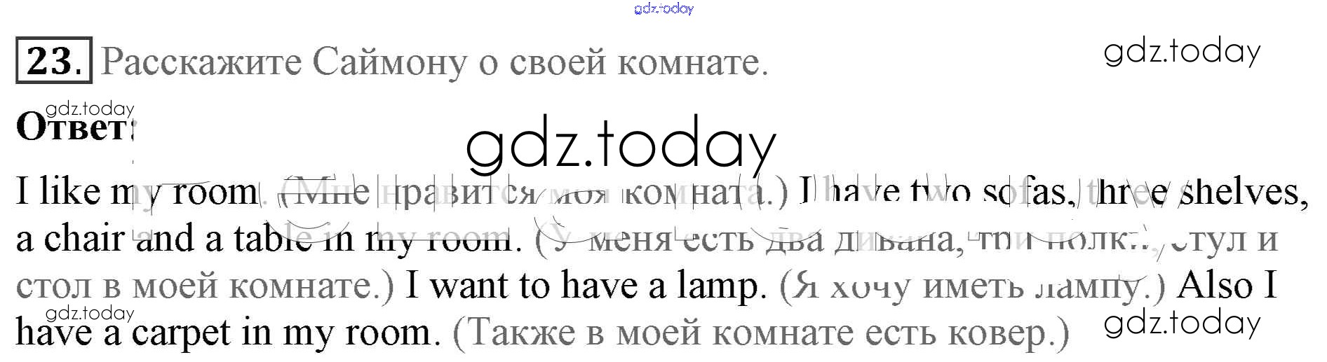 На страницах сайта gdz.today вы найдете учебный и вспомогательный материал, направленный на улучшения знаний школьной программы. ГДЗ - онлайн мир знаний Страница 23. What is there in your room Решение к Unit 2 23 Учебнику по Английскому языку для 4 класса Биболетова, Денисенко Дрофа Enjoy English 2016