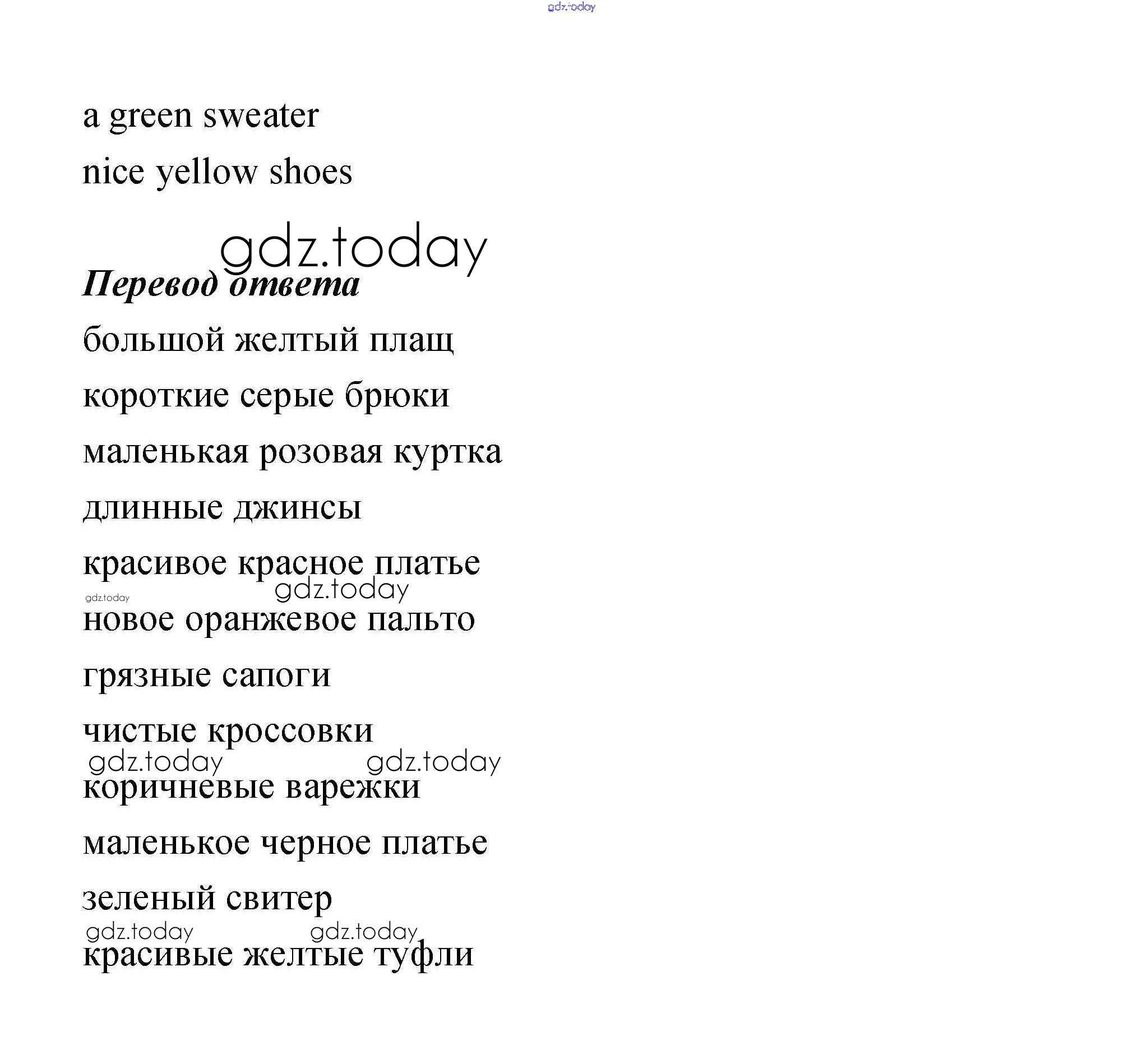 На страницах сайта gdz.today вы найдете учебный и вспомогательный материал, направленный на улучшения знаний школьной программы. ГДЗ - онлайн мир знаний Страница 85. Shopping For Clothes Решение к Unit 6 7 Учебнику по Английскому языку для 4 класса Биболетова, Денисенко Дрофа Enjoy English 2016