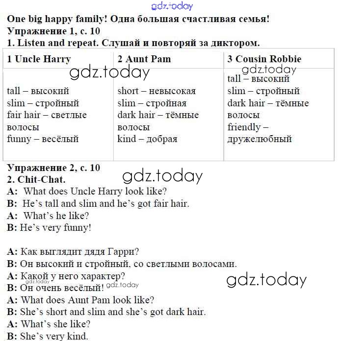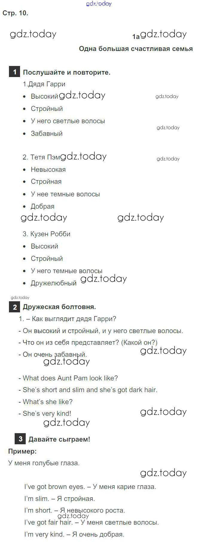 Ответы к Решение к модулю 1. Family & Friends! страница 10 Учебнику по Английскому языку для 4 класса Быкова, Дули Просвещение Spotlight 2015