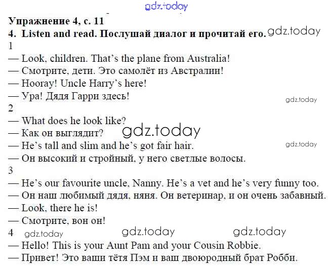 Ответы к Решение к модулю 1. Family & Friends! страница 11 Учебнику по Английскому языку для 4 класса Быкова, Дули Просвещение Spotlight 2015
