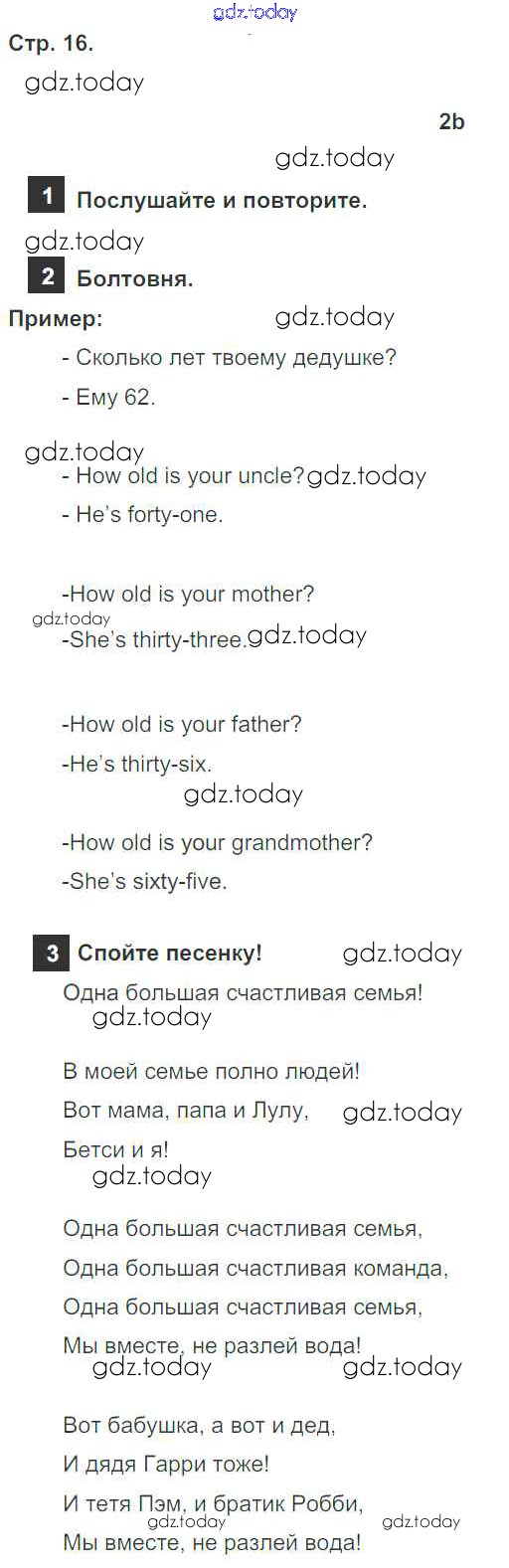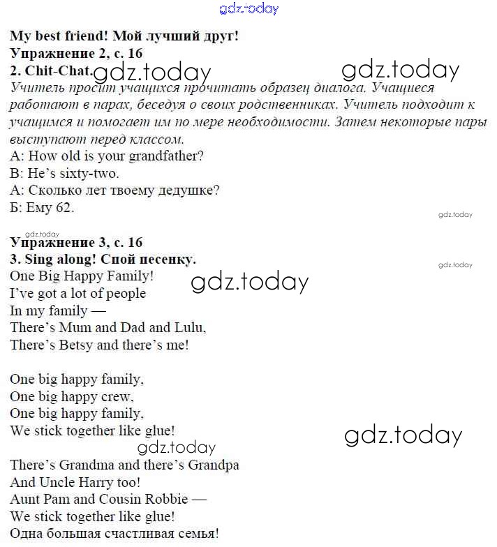 Ответы к Решение к модулю 1. Family & Friends! страница 16 Учебнику по Английскому языку для 4 класса Быкова, Дули Просвещение Spotlight 2015
