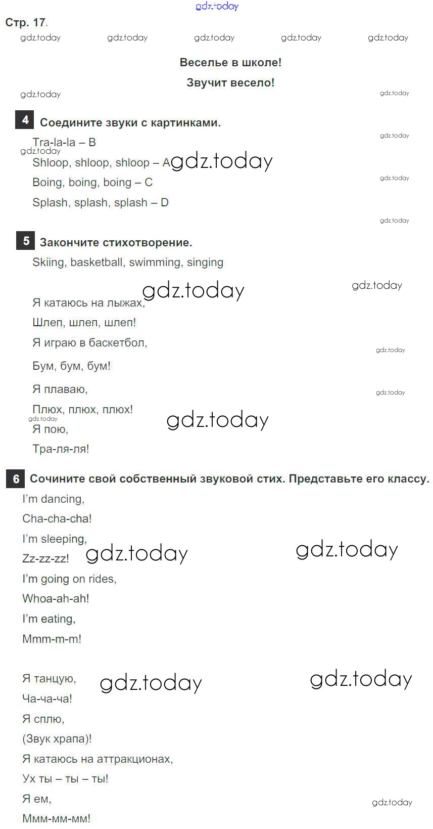 На страницах сайта gdz.today вы найдете учебный и вспомогательный материал, направленный на улучшения знаний школьной программы. ГДЗ - онлайн мир знаний Решение к модулю 1. Family & Friends! страница 17 Учебнику по Английскому языку для 4 класса Быкова, Дули Просвещение Spotlight 2015