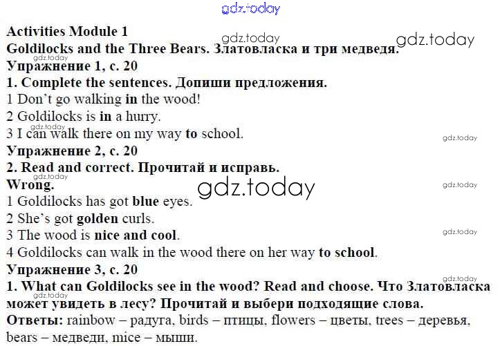 Ответы к Решение к модулю 1. Family & Friends! страница 20 Учебнику по Английскому языку для 4 класса Быкова, Дули Просвещение Spotlight 2015