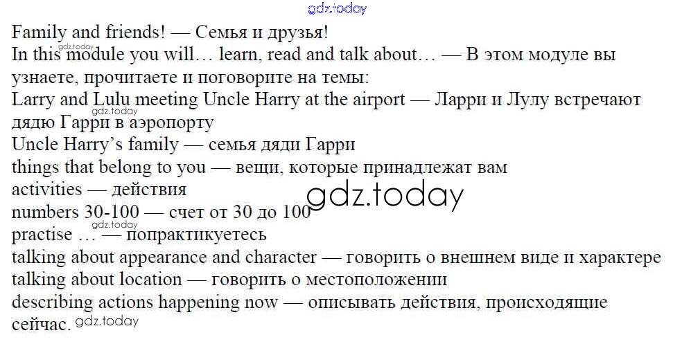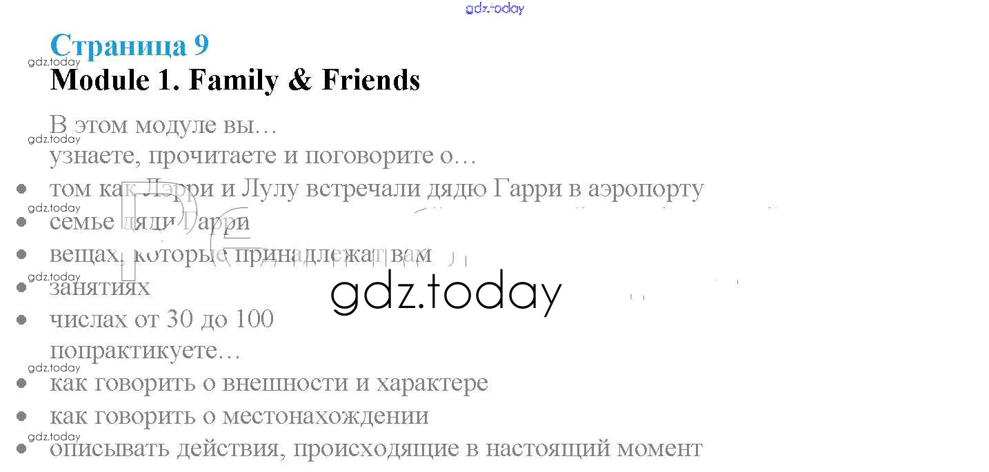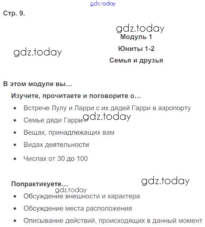 На страницах сайта gdz.today вы найдете учебный и вспомогательный материал, направленный на улучшения знаний школьной программы. ГДЗ - онлайн мир знаний Решение к модулю 1. Family & Friends! страница 9 Учебнику по Английскому языку для 4 класса Быкова, Дули Просвещение Spotlight 2015