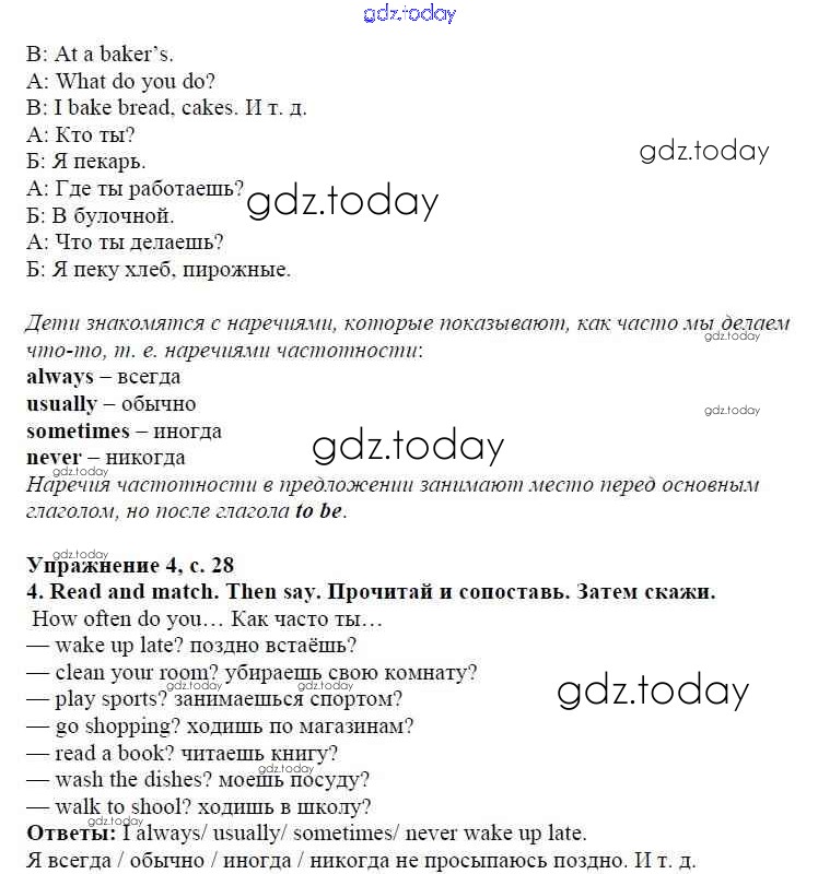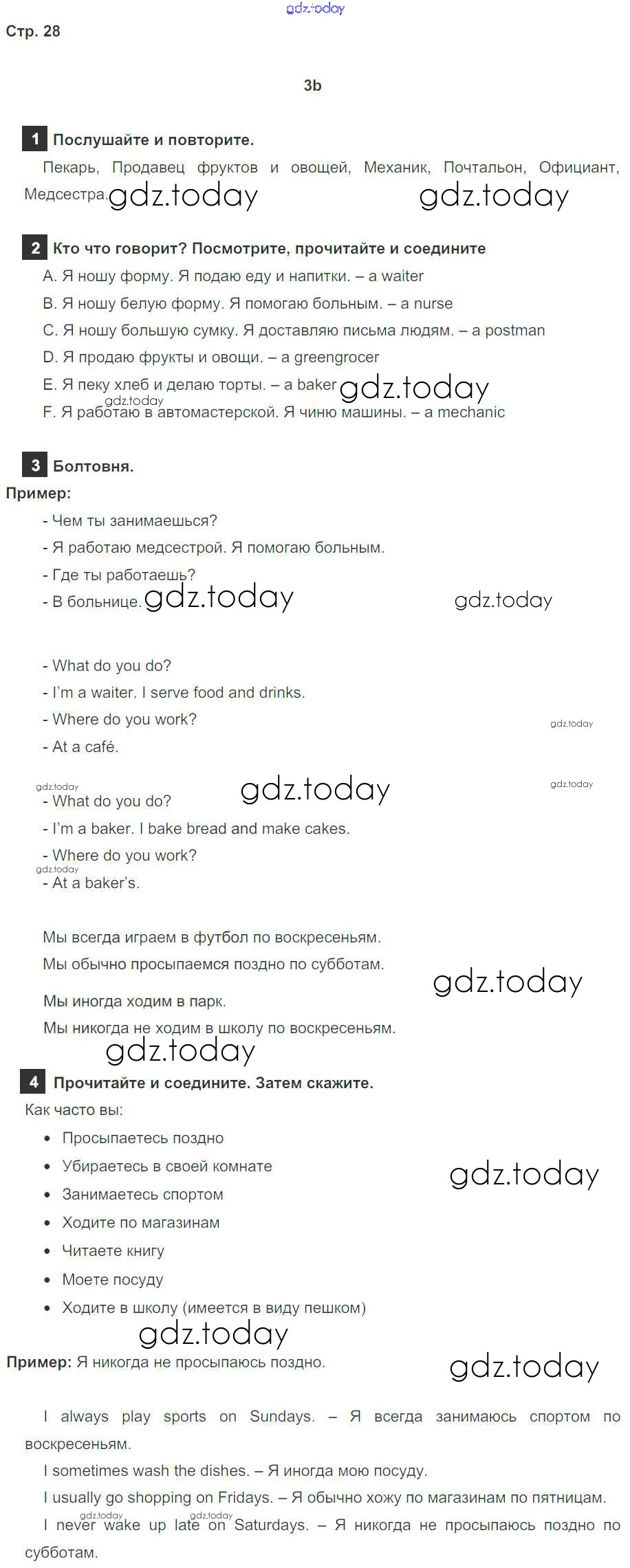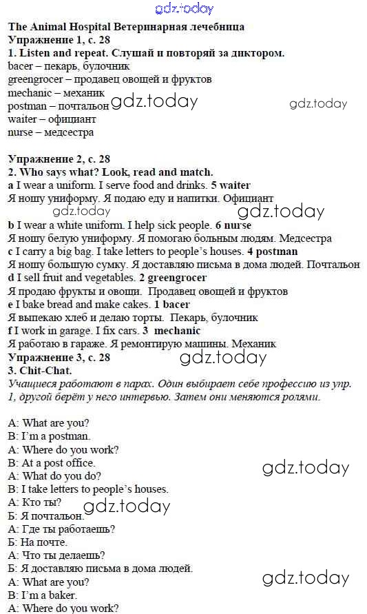 Ответы к Решение к модулю 2. A Working Day! страница 28 Учебнику по Английскому языку для 4 класса Быкова, Дули Просвещение Spotlight 2015
