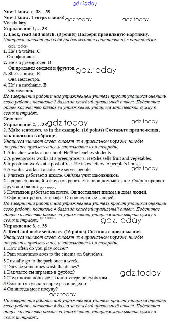 На страницах сайта gdz.today вы найдете учебный и вспомогательный материал, направленный на улучшения знаний школьной программы. ГДЗ - онлайн мир знаний Решение к модулю 2. A Working Day! страница 38 Учебнику по Английскому языку для 4 класса Быкова, Дули Просвещение Spotlight 2015