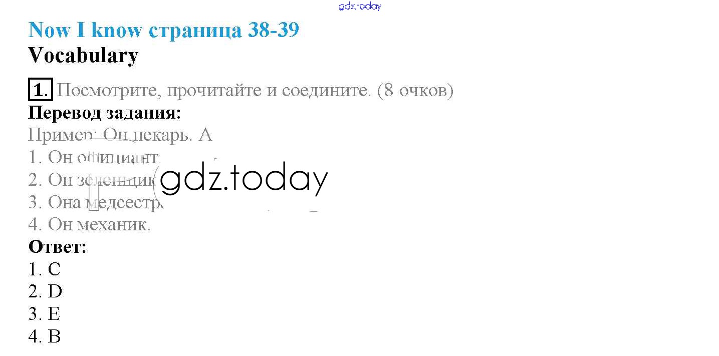 Ответы к Решение к модулю 2. A Working Day! страница 38 Учебнику по Английскому языку для 4 класса Быкова, Дули Просвещение Spotlight 2015