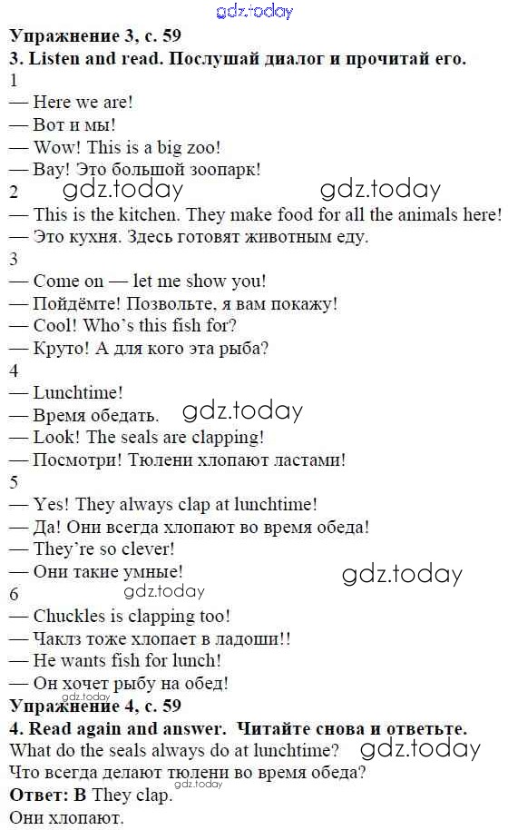 На страницах сайта gdz.today вы найдете учебный и вспомогательный материал, направленный на улучшения знаний школьной программы. ГДЗ - онлайн мир знаний Решение к модулю 4. At The Zoo! страница 59 Учебнику по Английскому языку для 4 класса Быкова, Дули Просвещение Spotlight 2015