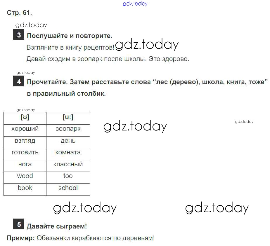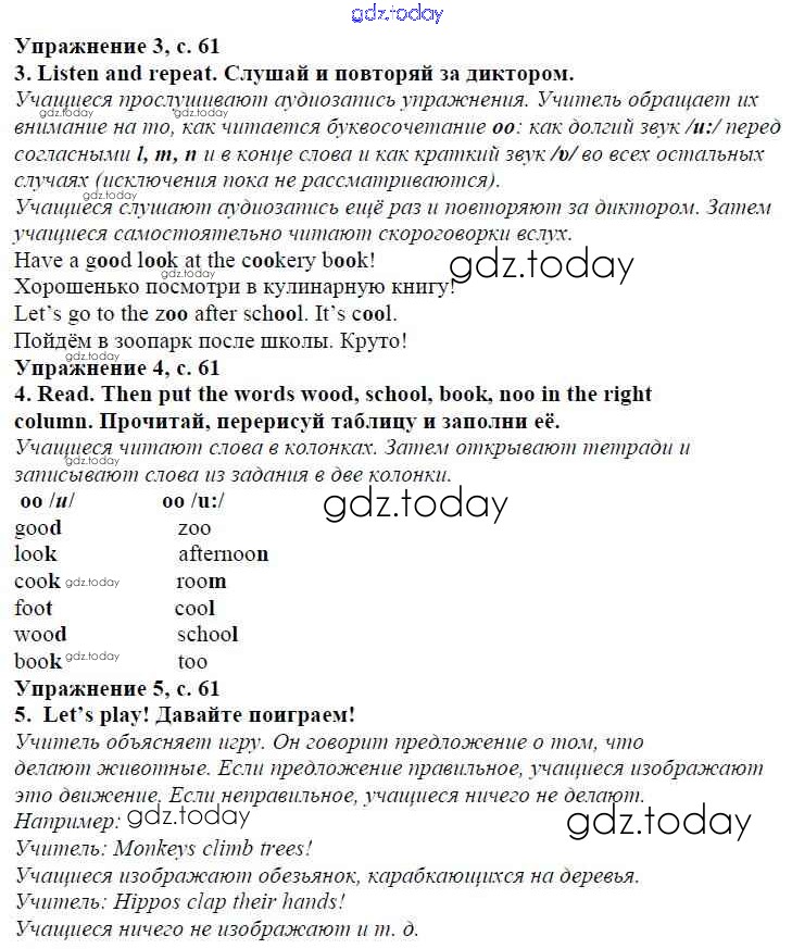 На страницах сайта gdz.today вы найдете учебный и вспомогательный материал, направленный на улучшения знаний школьной программы. ГДЗ - онлайн мир знаний Решение к модулю 4. At The Zoo! страница 61 Учебнику по Английскому языку для 4 класса Быкова, Дули Просвещение Spotlight 2015