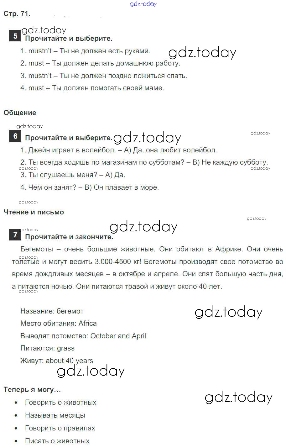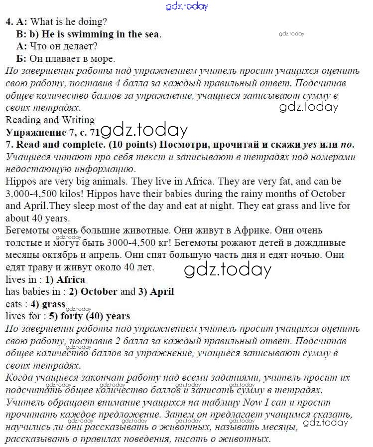 На страницах сайта gdz.today вы найдете учебный и вспомогательный материал, направленный на улучшения знаний школьной программы. ГДЗ - онлайн мир знаний Решение к модулю 4. At The Zoo! страница 71 Учебнику по Английскому языку для 4 класса Быкова, Дули Просвещение Spotlight 2015