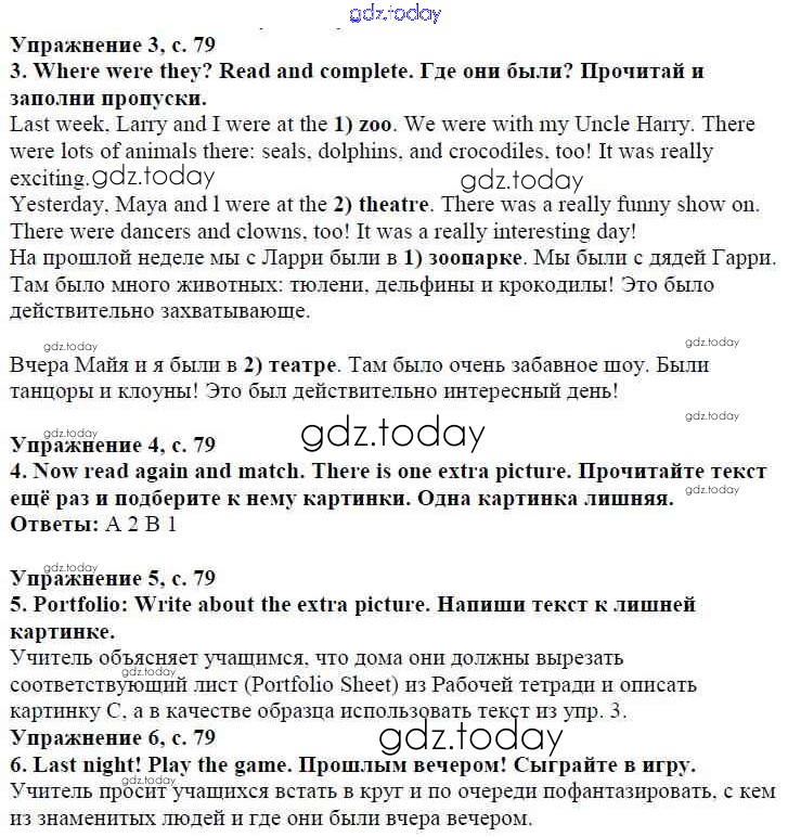Ответы к Решение к модулю 5. Where Were You Yesterday! страница 79 Учебнику по Английскому языку для 4 класса Быкова, Дули Просвещение Spotlight 2015