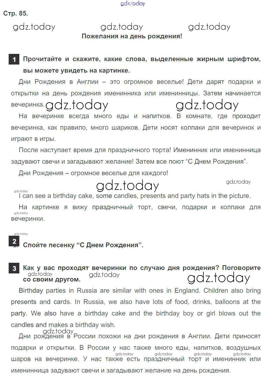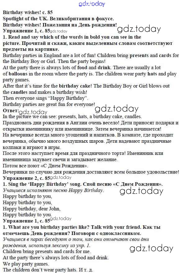 Ответы к Решение к модулю 5. Where Were You Yesterday! страница 85 Учебнику по Английскому языку для 4 класса Быкова, Дули Просвещение Spotlight 2015
