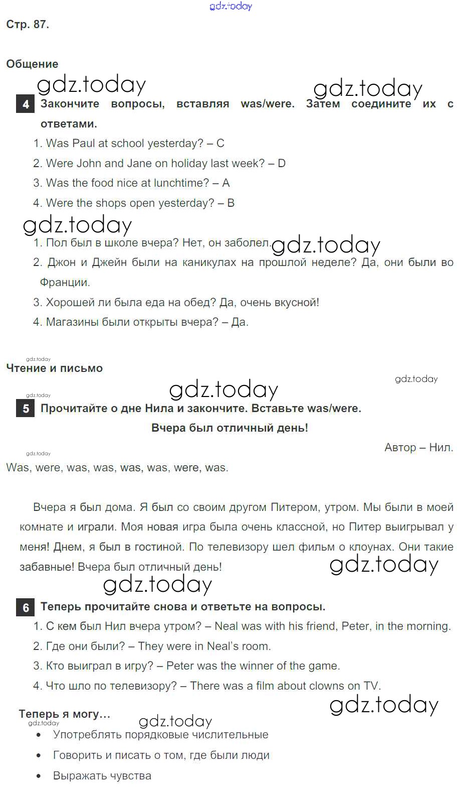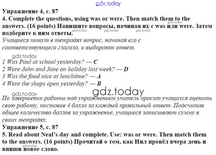 Ответы к Решение к модулю 5. Where Were You Yesterday! страница 87 Учебнику по Английскому языку для 4 класса Быкова, Дули Просвещение Spotlight 2015