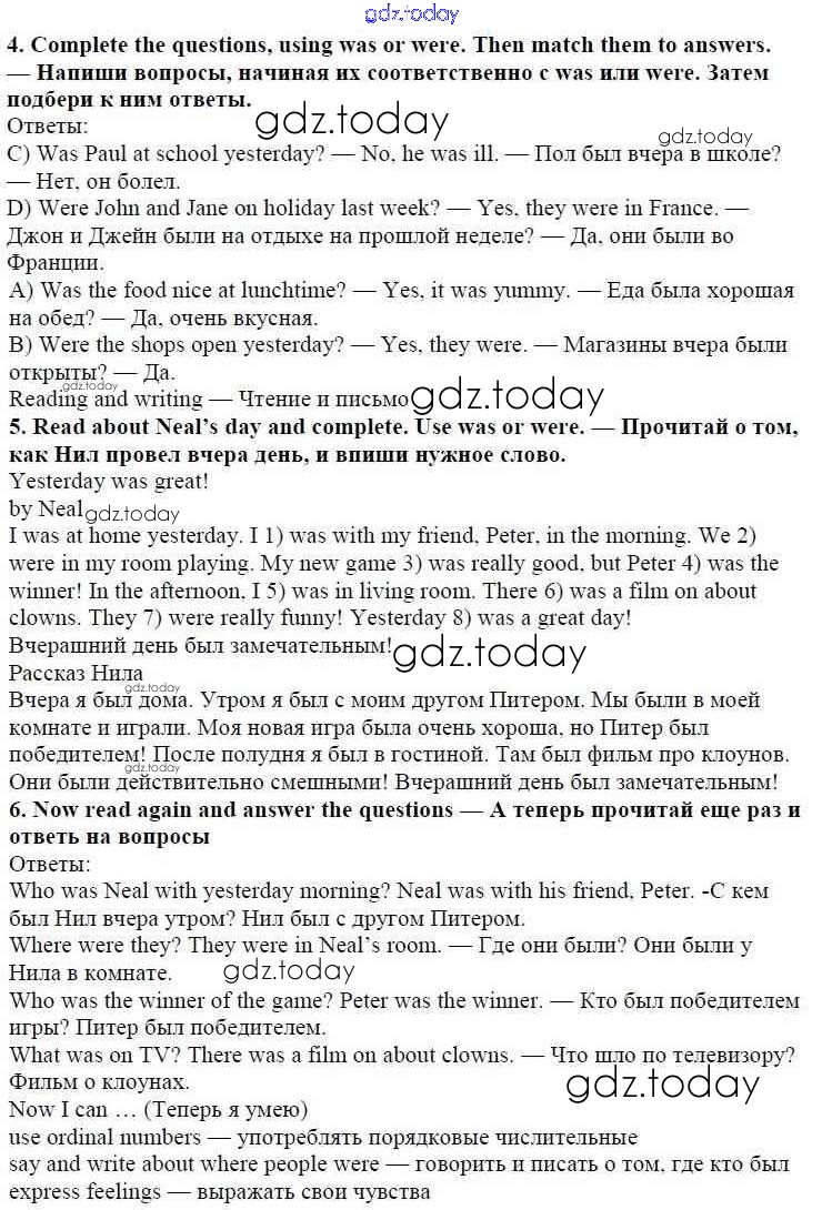 На страницах сайта gdz.today вы найдете учебный и вспомогательный материал, направленный на улучшения знаний школьной программы. ГДЗ - онлайн мир знаний Решение к модулю 5. Where Were You Yesterday! страница 87 Учебнику по Английскому языку для 4 класса Быкова, Дули Просвещение Spotlight 2015