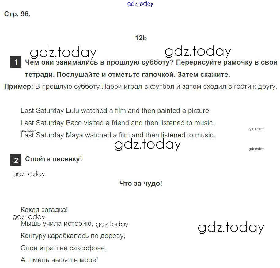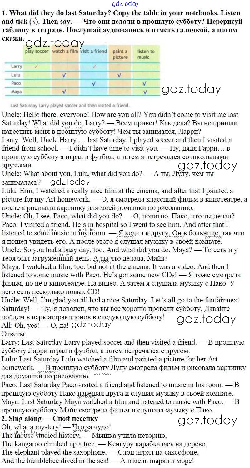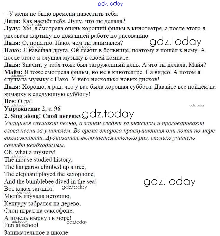 На страницах сайта gdz.today вы найдете учебный и вспомогательный материал, направленный на улучшения знаний школьной программы. ГДЗ - онлайн мир знаний Решение к модулю 6. Tell The Tale! страница 96 Учебнику по Английскому языку для 4 класса Быкова, Дули Просвещение Spotlight 2015
