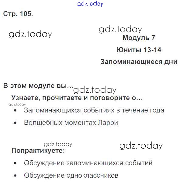 Ответы к Решение к модулю 7. Days To Remember! страница 105 Учебнику по Английскому языку для 4 класса Быкова, Дули Просвещение Spotlight 2015