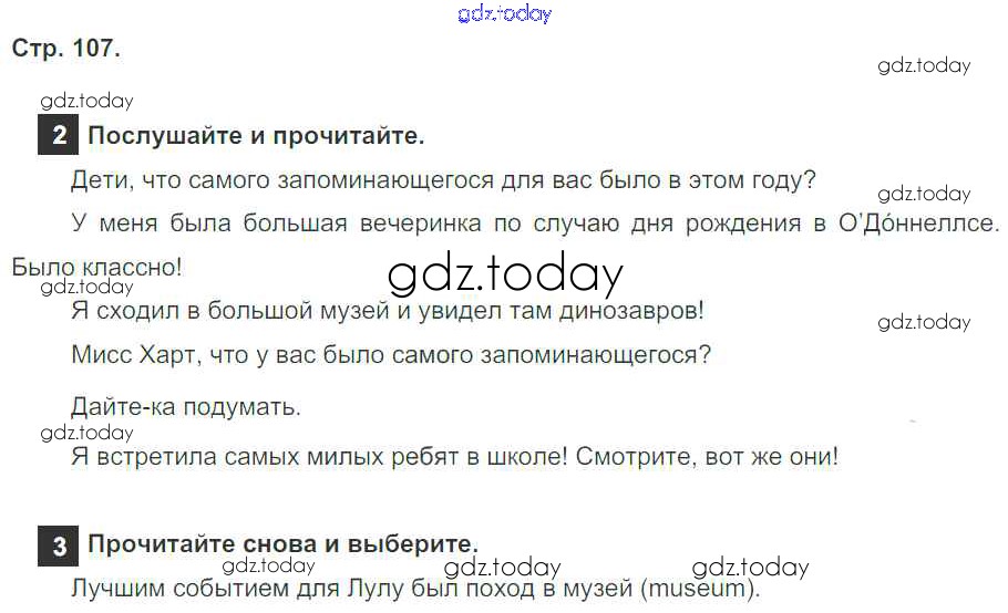 Ответы к Решение к модулю 7. Days To Remember! страница 107 Учебнику по Английскому языку для 4 класса Быкова, Дули Просвещение Spotlight 2015