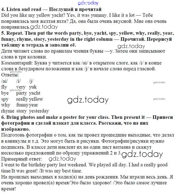 На страницах сайта gdz.today вы найдете учебный и вспомогательный материал, направленный на улучшения знаний школьной программы. ГДЗ - онлайн мир знаний Решение к модулю 7. Days To Remember! страница 109 Учебнику по Английскому языку для 4 класса Быкова, Дули Просвещение Spotlight 2015