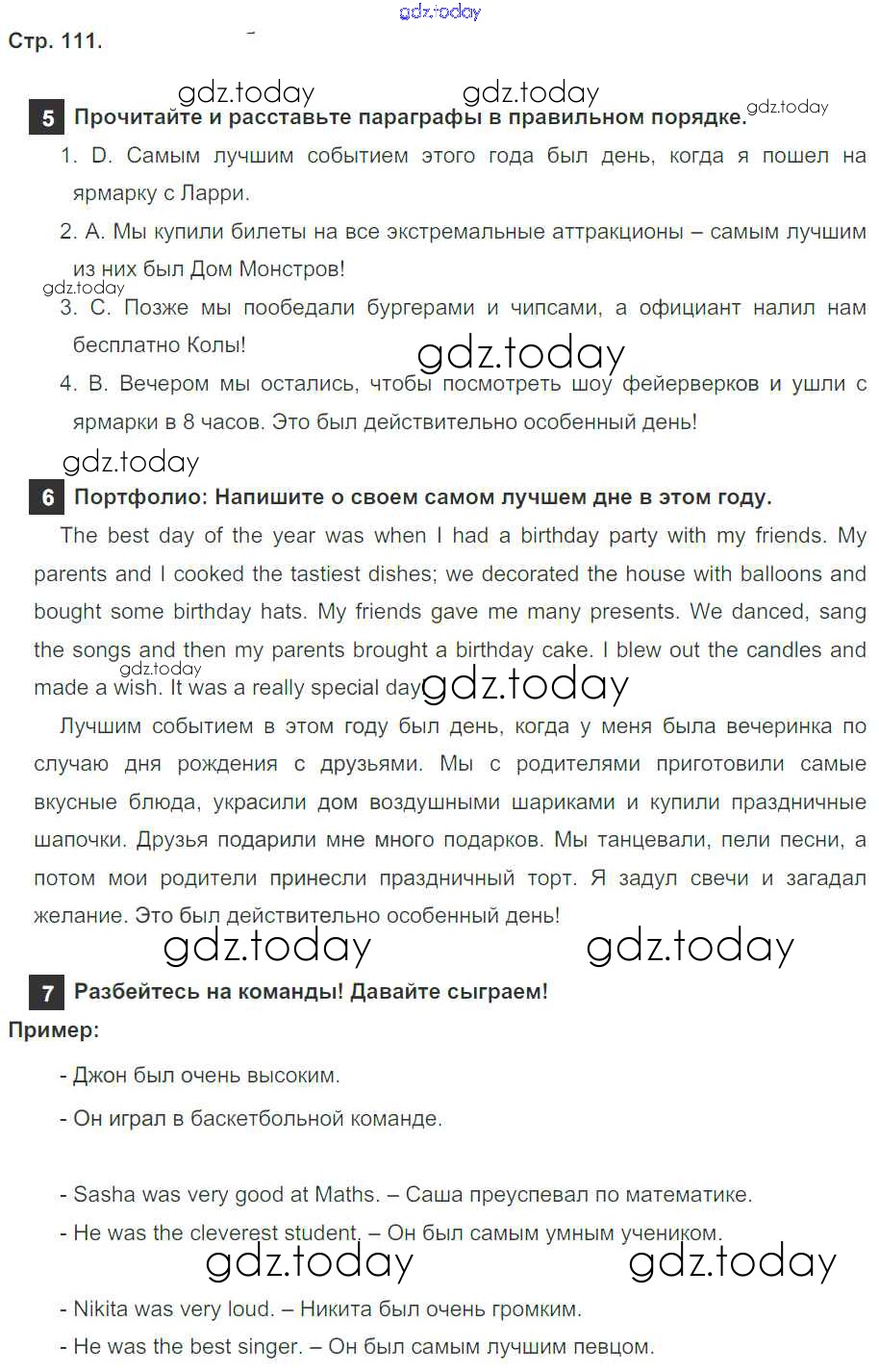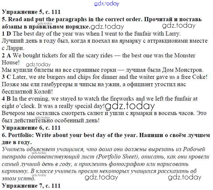 Ответы к Решение к модулю 7. Days To Remember! страница 111 Учебнику по Английскому языку для 4 класса Быкова, Дули Просвещение Spotlight 2015