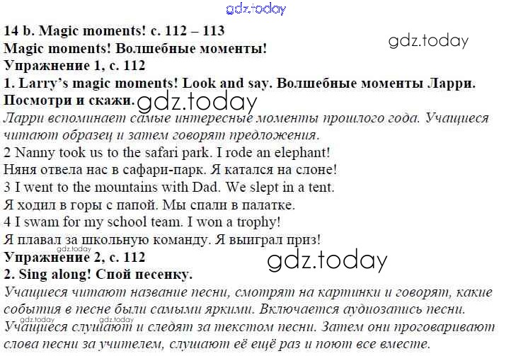 На страницах сайта gdz.today вы найдете учебный и вспомогательный материал, направленный на улучшения знаний школьной программы. ГДЗ - онлайн мир знаний Решение к модулю 7. Days To Remember! страница 112 Учебнику по Английскому языку для 4 класса Быкова, Дули Просвещение Spotlight 2015