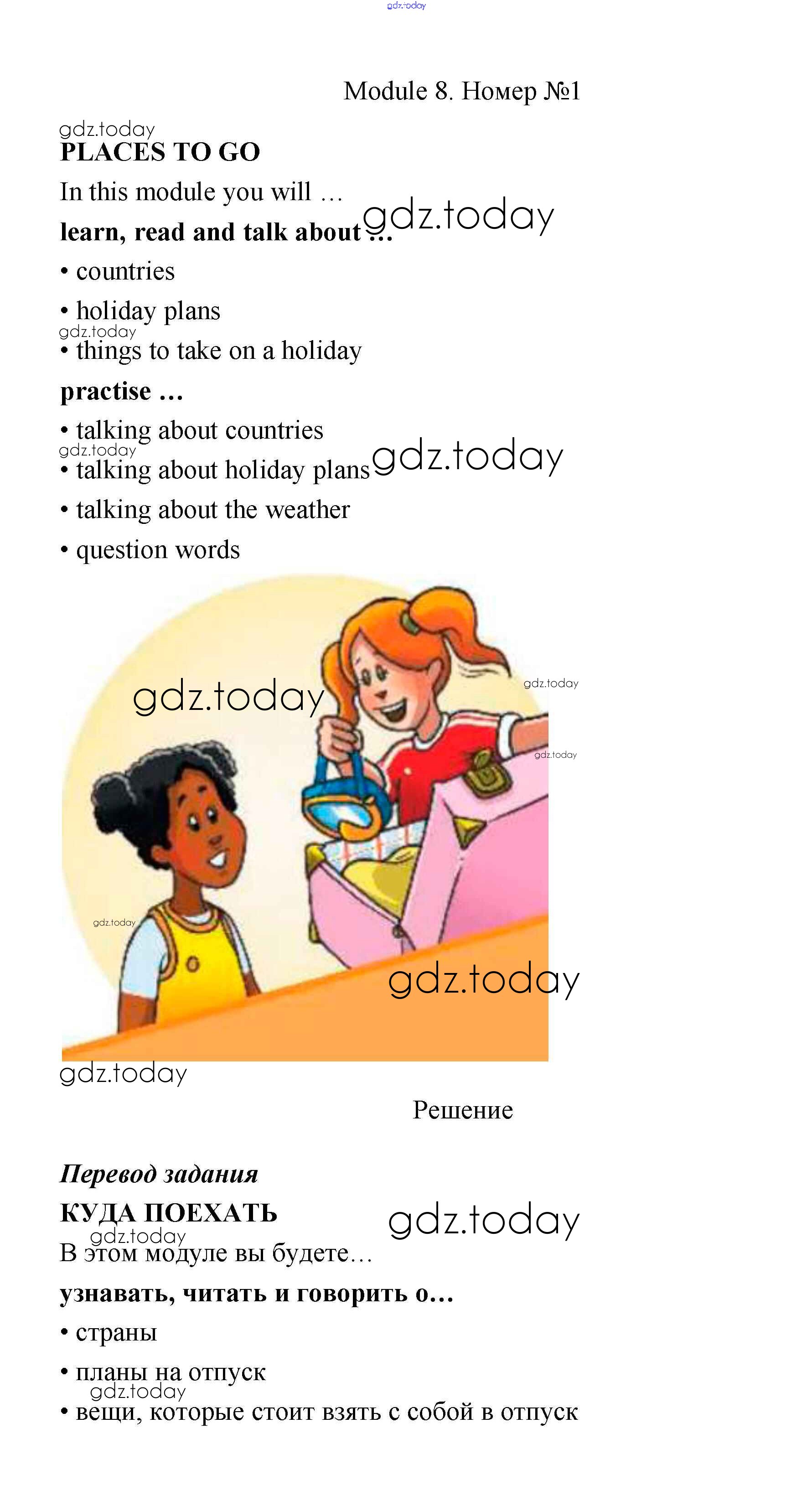 На страницах сайта gdz.today вы найдете учебный и вспомогательный материал, направленный на улучшения знаний школьной программы. ГДЗ - онлайн мир знаний Решение к модулю 8. Places To Go! страница 121 Учебнику по Английскому языку для 4 класса Быкова, Дули Просвещение Spotlight 2015