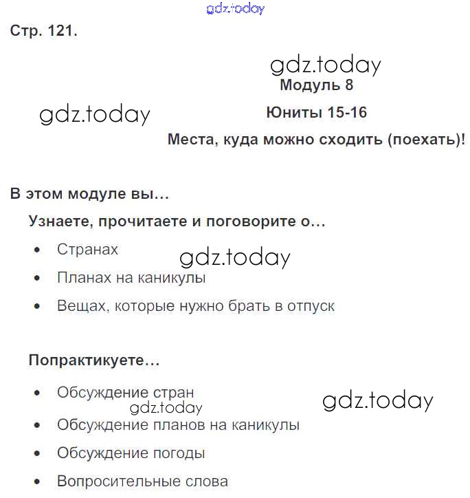 Ответы к Решение к модулю 8. Places To Go! страница 121 Учебнику по Английскому языку для 4 класса Быкова, Дули Просвещение Spotlight 2015