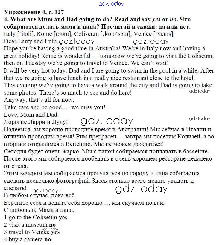 Ответы к Решение к модулю 8. Places To Go! страница 127 Учебнику по Английскому языку для 4 класса Быкова, Дули Просвещение Spotlight 2015
