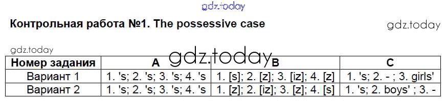 На страницах сайта gdz.today вы найдете учебный и вспомогательный материал, направленный на улучшения знаний школьной программы. ГДЗ - онлайн мир знаний Решение к контрольным работам КР №1. The possessive case Контрольно-измерительным материалам (КИМ) по Английскому языку для 4 класса Кулинич ВАКО 2018