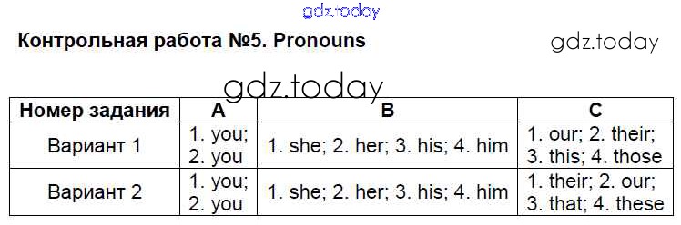 На страницах сайта gdz.today вы найдете учебный и вспомогательный материал, направленный на улучшения знаний школьной программы. ГДЗ - онлайн мир знаний Решение к контрольным работам КР №5. Pronouns Контрольно-измерительным материалам (КИМ) по Английскому языку для 4 класса Кулинич ВАКО 2018