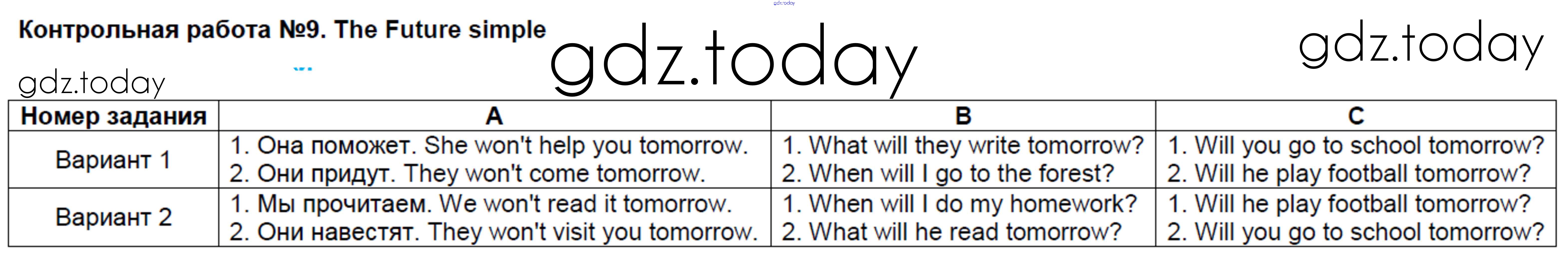 На страницах сайта gdz.today вы найдете учебный и вспомогательный материал, направленный на улучшения знаний школьной программы. ГДЗ - онлайн мир знаний Решение к контрольным работам КР №9. The Future simple Контрольно-измерительным материалам (КИМ) по Английскому языку для 4 класса Кулинич ВАКО 2018