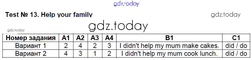 Ответы к Решение к тестам Тест №13. Help your family Контрольно-измерительным материалам (КИМ) по Английскому языку для 4 класса Кулинич ВАКО 2018