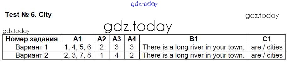 Ответы к Решение к тестам Тест №6. City Контрольно-измерительным материалам (КИМ) по Английскому языку для 4 класса Кулинич ВАКО 2018