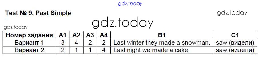 На страницах сайта gdz.today вы найдете учебный и вспомогательный материал, направленный на улучшения знаний школьной программы. ГДЗ - онлайн мир знаний Решение к тестам Тест №9. Past Simple Контрольно-измерительным материалам (КИМ) по Английскому языку для 4 класса Кулинич ВАКО 2018