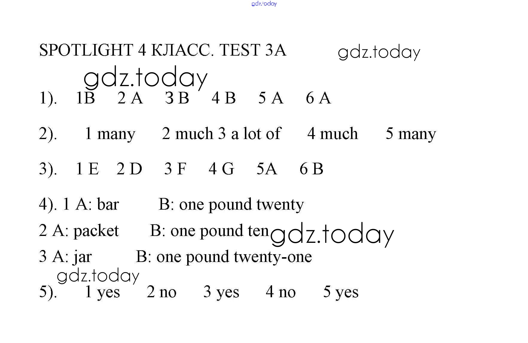 Ответы к Решение. Контрольная работа 3 3A Контрольным работам по Английскому языку для 4 класса Быкова, Эванс Просвещение Spotlight 2018