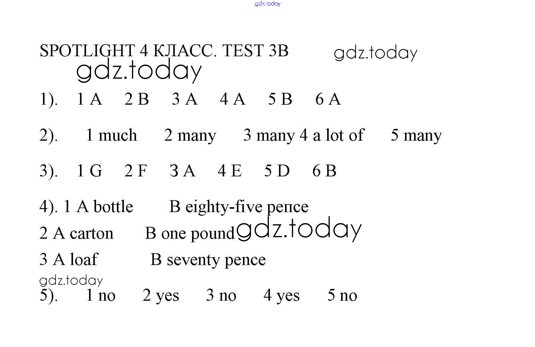 На страницах сайта gdz.today вы найдете учебный и вспомогательный материал, направленный на улучшения знаний школьной программы. ГДЗ - онлайн мир знаний Решение. Контрольная работа 3 3B Контрольным работам по Английскому языку для 4 класса Быкова, Эванс Просвещение Spotlight 2018