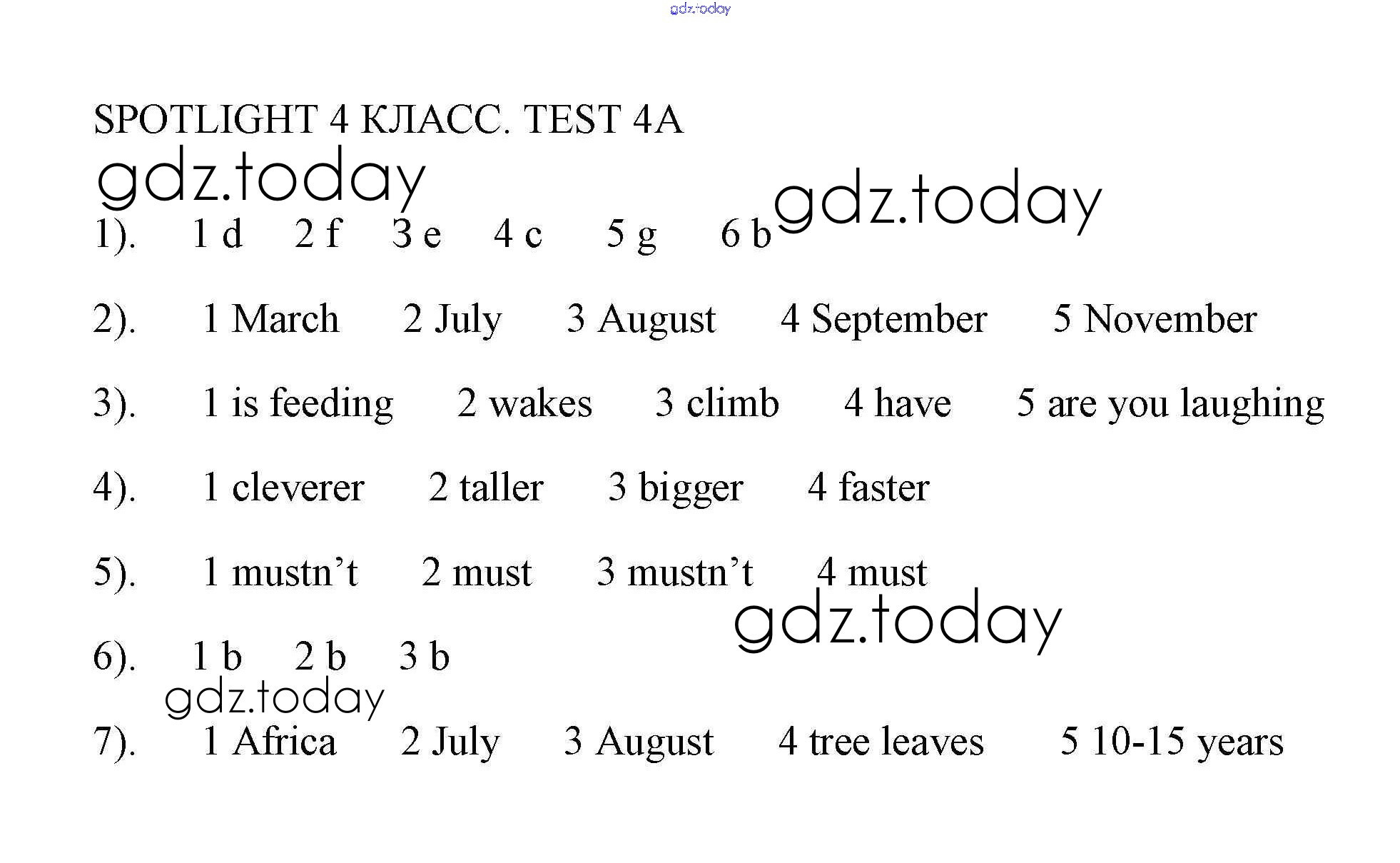 На страницах сайта gdz.today вы найдете учебный и вспомогательный материал, направленный на улучшения знаний школьной программы. ГДЗ - онлайн мир знаний Решение. Контрольная работа 4 4A Контрольным работам по Английскому языку для 4 класса Быкова, Эванс Просвещение Spotlight 2018