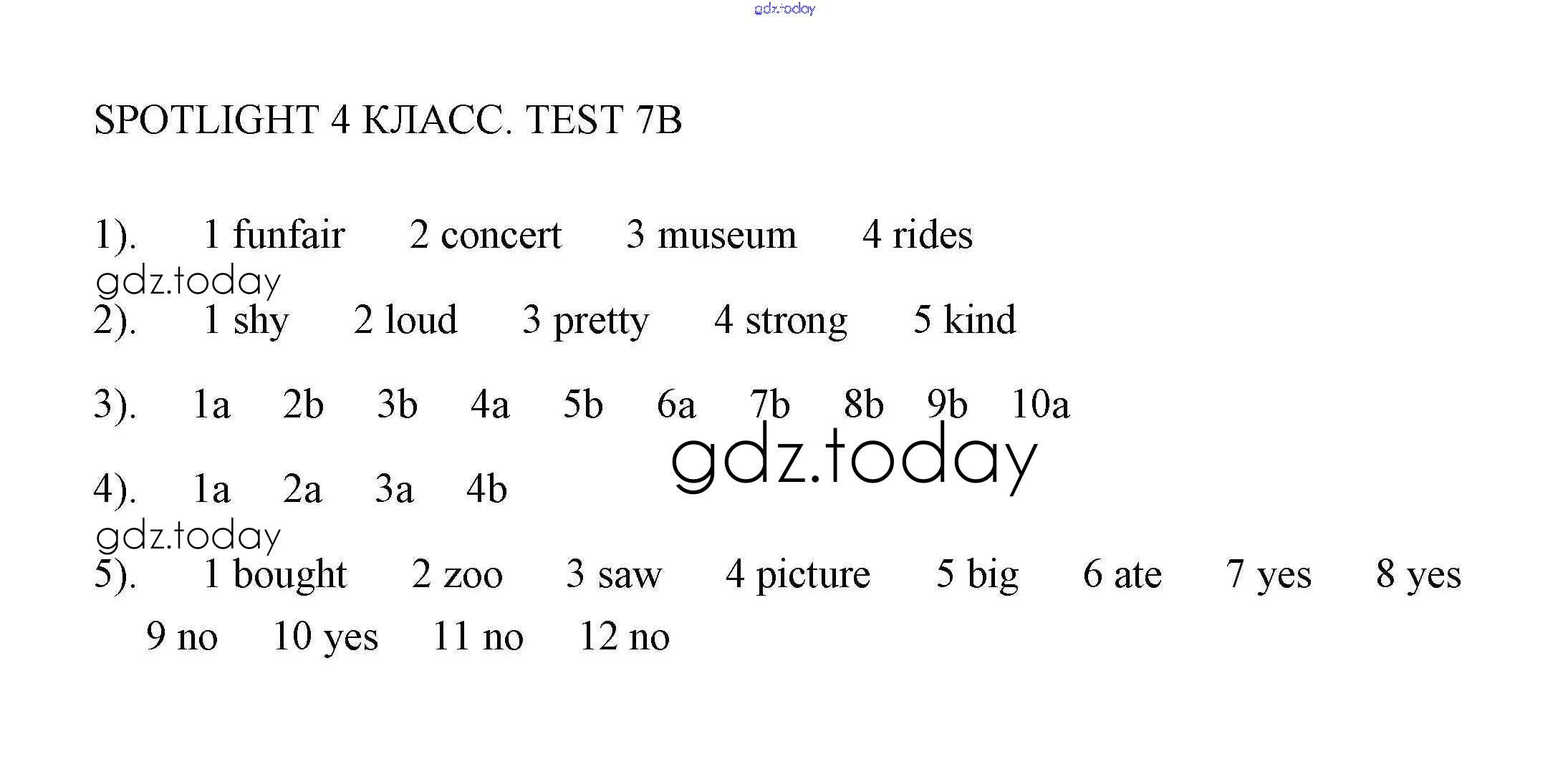 Ответы к Решение. Контрольная работа 7 7B Контрольным работам по Английскому языку для 4 класса Быкова, Эванс Просвещение Spotlight 2018