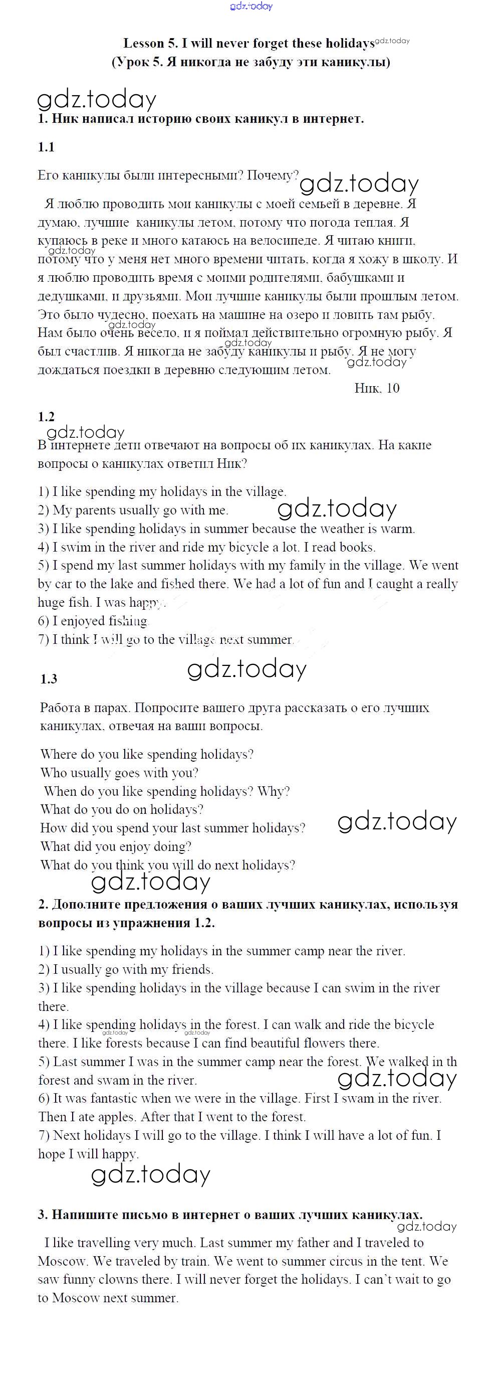 На страницах сайта gdz.today вы найдете учебный и вспомогательный материал, направленный на улучшения знаний школьной программы. ГДЗ - онлайн мир знаний Решение к Unit 1. My summer favourites Lesson 5 Учебнику по Английскому языку для 4 класса Кузовлев, Перегудова Просвещение 2015