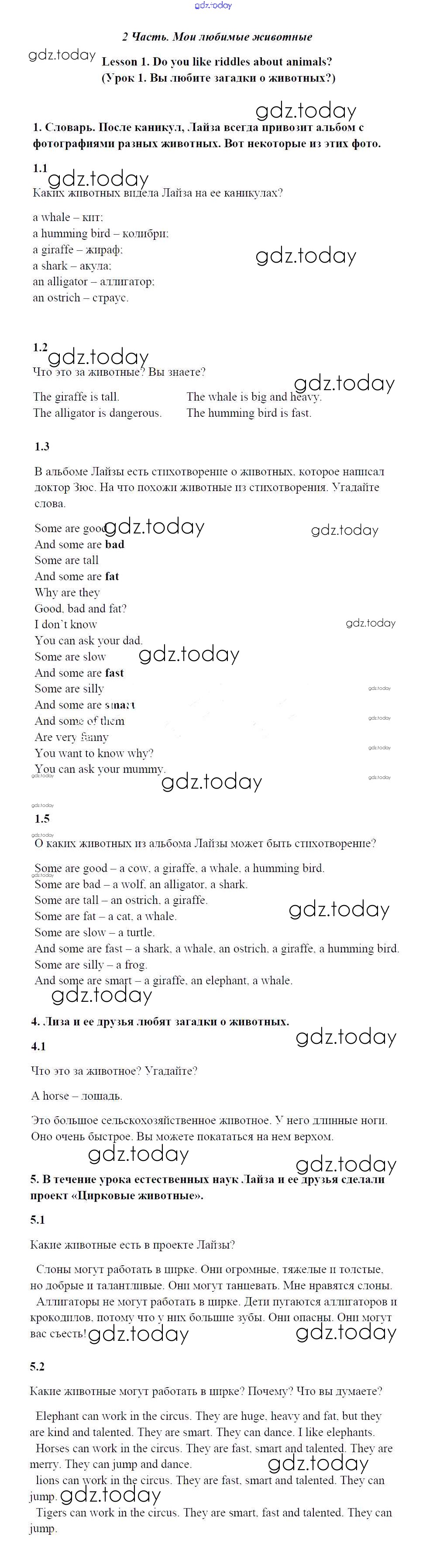 Ответы к Решение к Unit 2. The animals I like Lesson 1 Учебнику по Английскому языку для 4 класса Кузовлев, Перегудова Просвещение 2015