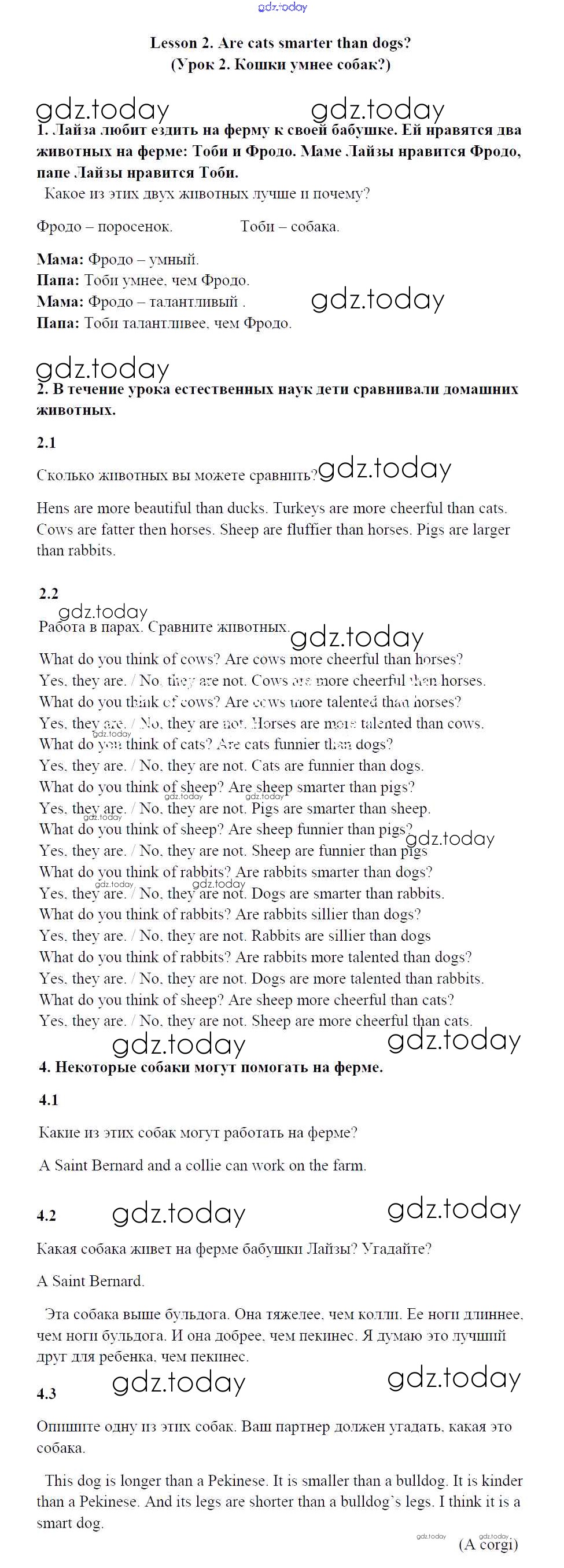 Ответы к Решение к Unit 2. The animals I like Lesson 2 Учебнику по Английскому языку для 4 класса Кузовлев, Перегудова Просвещение 2015