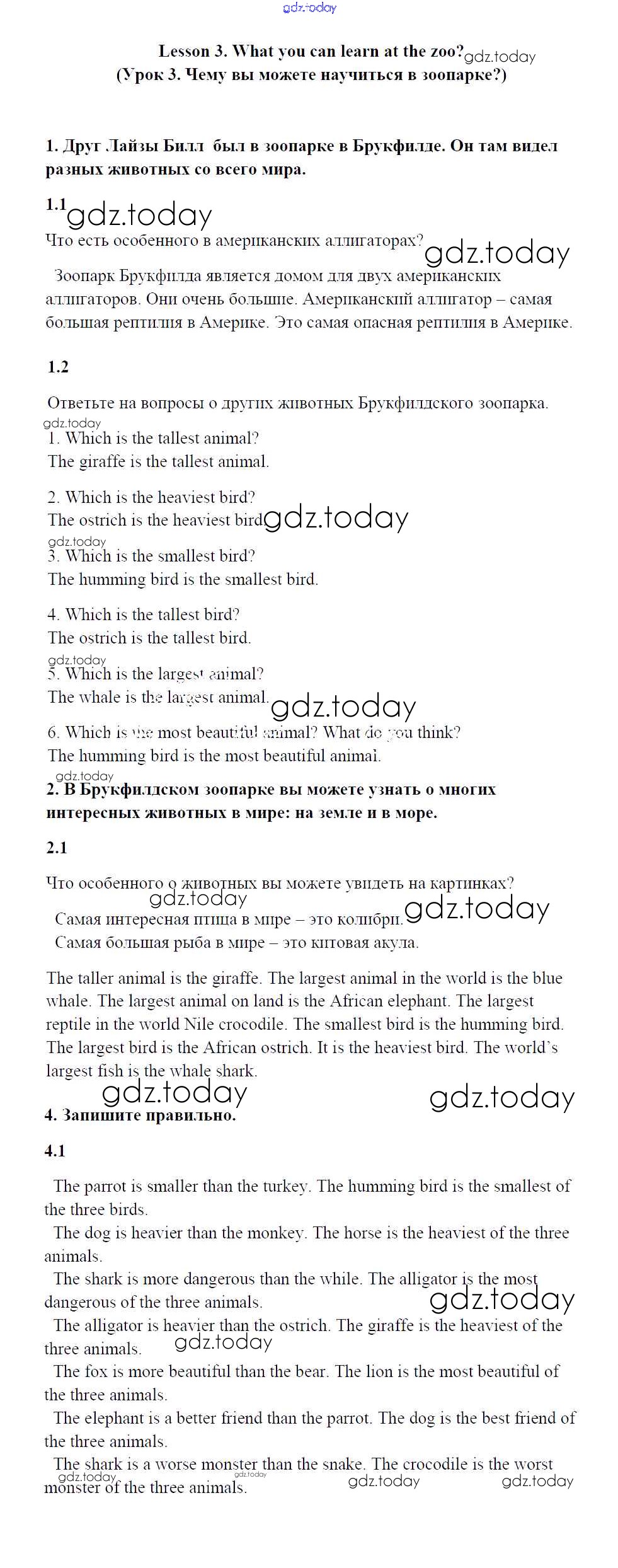 Ответы к Решение к Unit 2. The animals I like Lesson 3 Учебнику по Английскому языку для 4 класса Кузовлев, Перегудова Просвещение 2015