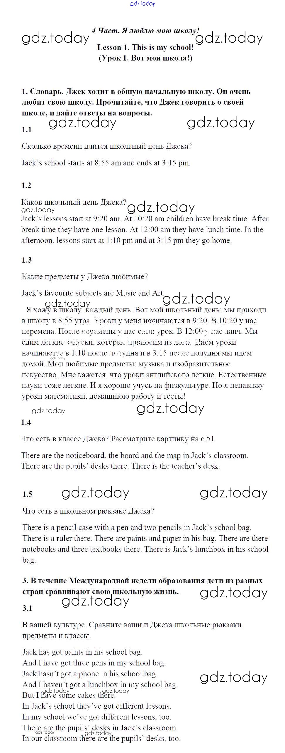 Ответы к Решение к Unit 4. I like my school! Lesson 1 Учебнику по Английскому языку для 4 класса Кузовлев, Перегудова Просвещение 2015