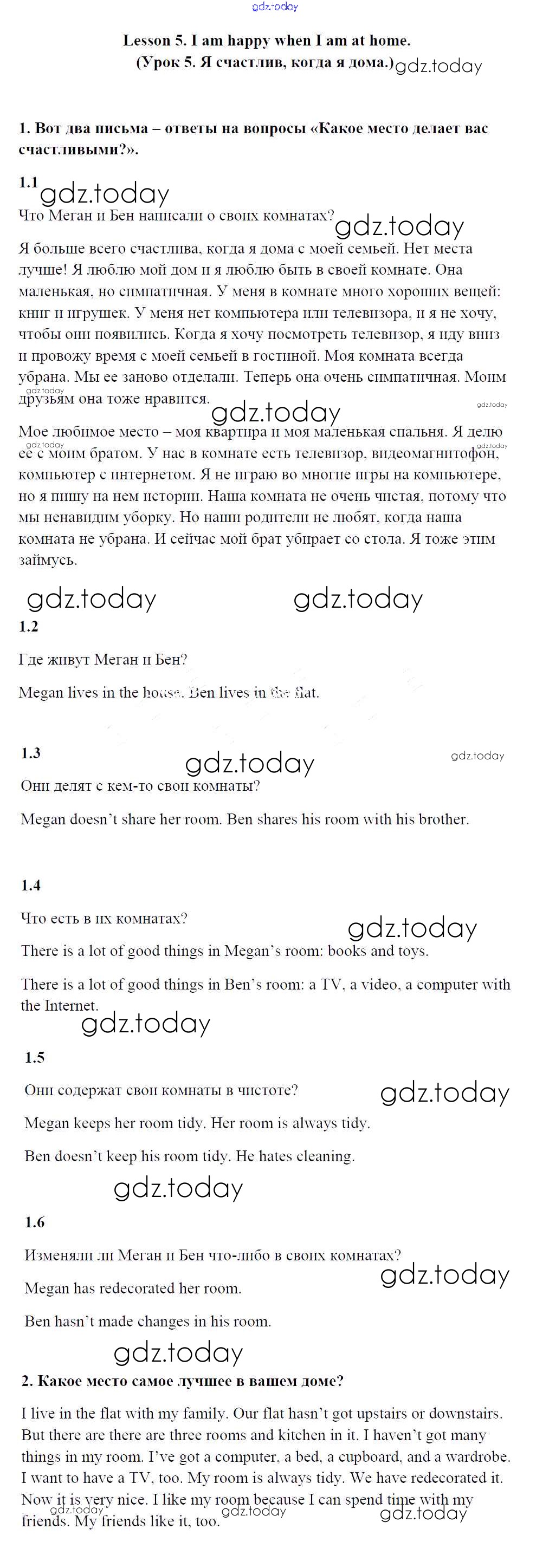 Ответы к Решение к Unit 5. The place that makes me happy Lesson 5 Учебнику по Английскому языку для 4 класса Кузовлев, Перегудова Просвещение 2015