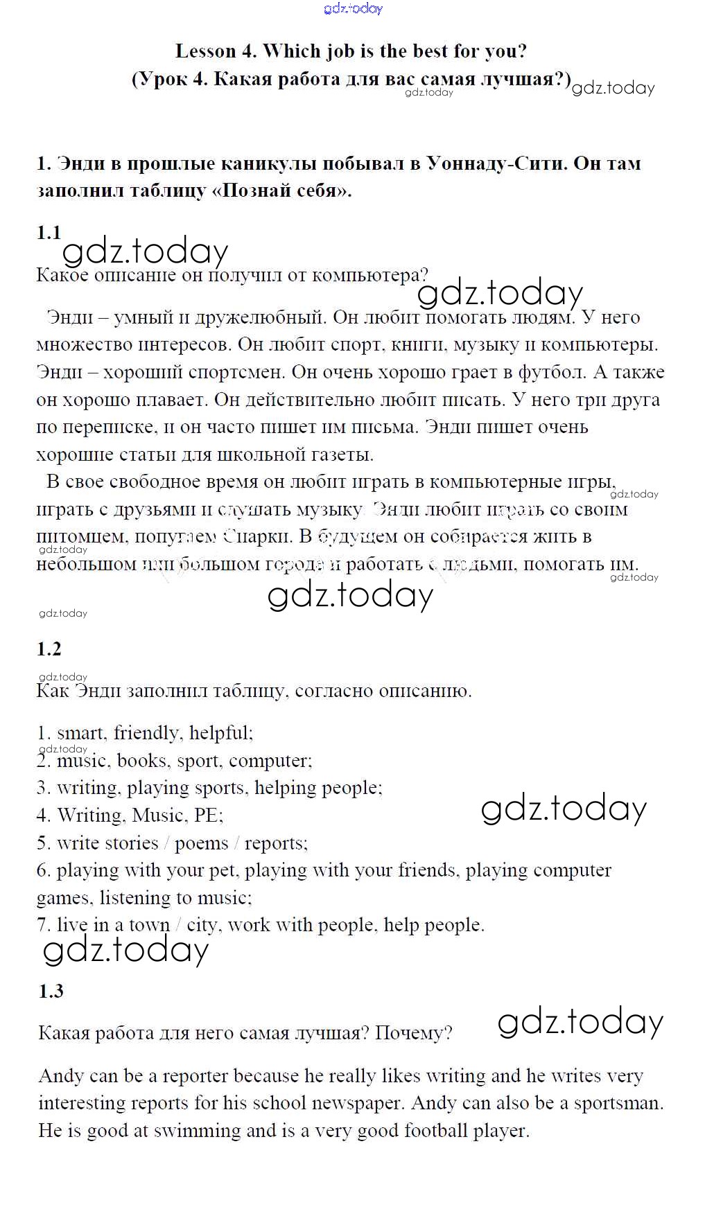 Ответы к Решение к Unit 7. My dream job Lesson 4 Учебнику по Английскому языку для 4 класса Кузовлев, Перегудова Просвещение 2015
