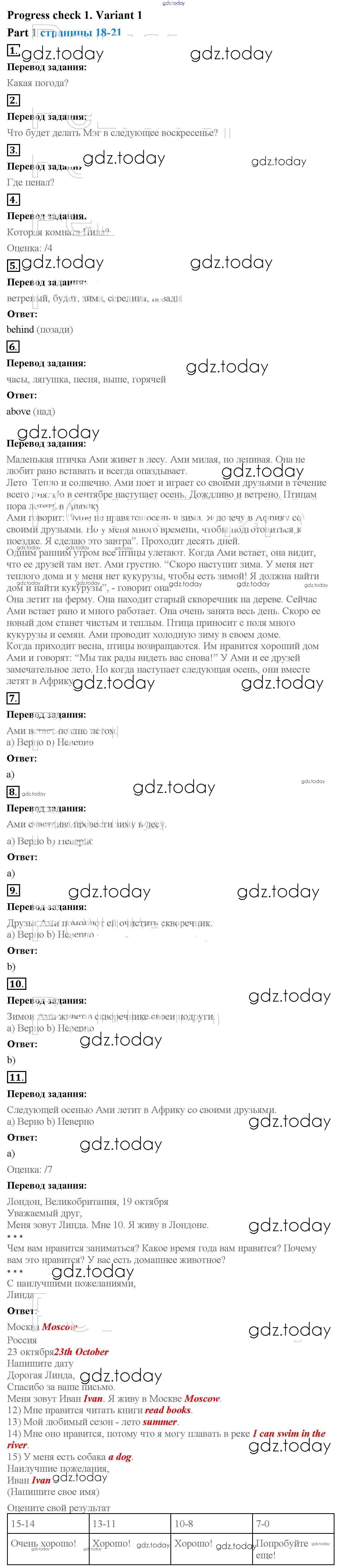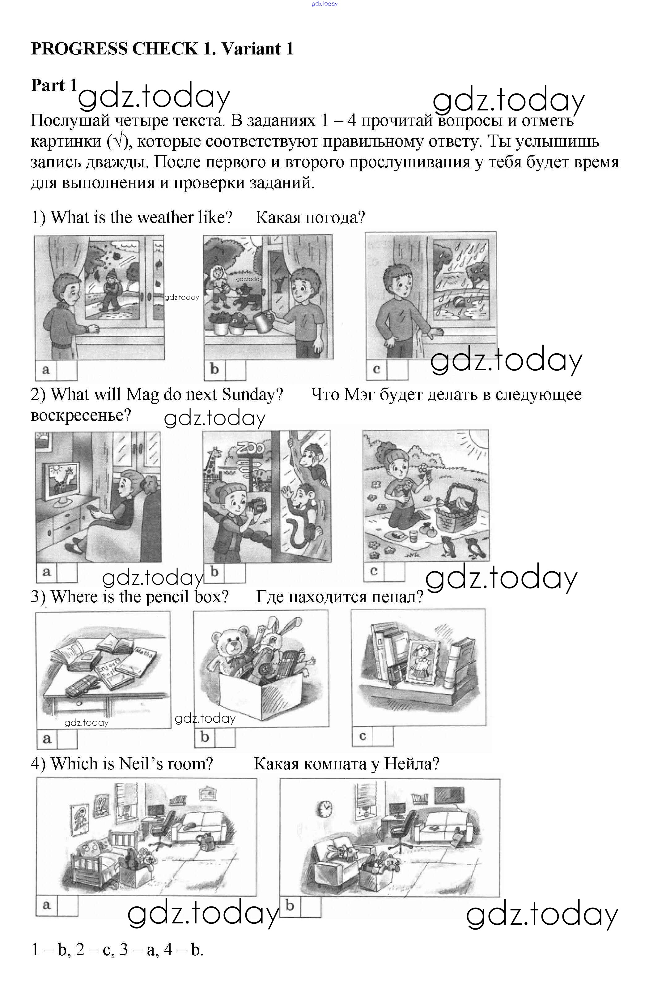 Ответы к Variant 1 Progress check 1 1 Рабочей тетради с контрольными работами по Английскому языку для 4 класса Биболетова, Денисенко Аст/Астрель Enjoy English 2016